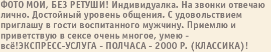 Множество очаровательных проституток и путан ждет Вас в гости. Займитесь сексом с ними и окунитесь в мир безумной любви и страсти, а наш сайт поможет Вам в этом!