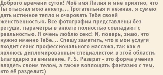 Шлюха Кристина пишет о себе:
