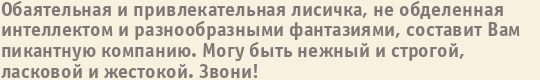 Шлюха Татьяна пишет о себе: