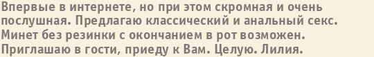 Шлюха Виктория пишет о себе: