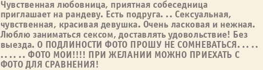 Множество очаровательных проституток и путан ждет Вас в гости. Займитесь сексом с ними и окунитесь в мир безумной любви и страсти, а наш сайт поможет Вам в этом!