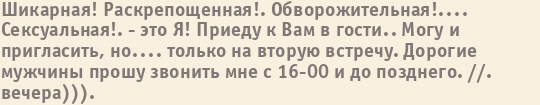 Множество очаровательных проституток и путан ждет Вас в гости. Займитесь сексом с ними и окунитесь в мир безумной любви и страсти, а наш сайт поможет Вам в этом!
