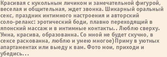 Шлюха Оля пишет о себе: