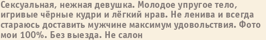 Множество очаровательных проституток и путан ждет Вас в гости. Займитесь сексом с ними и окунитесь в мир безумной любви и страсти, а наш сайт поможет Вам в этом!