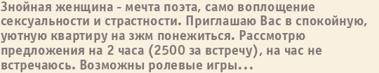 Множество очаровательных проституток и путан ждет Вас в гости. Займитесь сексом с ними и окунитесь в мир безумной любви и страсти, а наш сайт поможет Вам в этом!