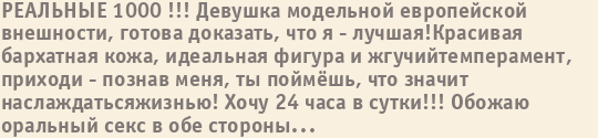 Множество очаровательных проституток и путан ждет Вас в гости. Займитесь сексом с ними и окунитесь в мир безумной любви и страсти, а наш сайт поможет Вам в этом!