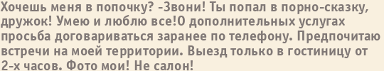 Множество очаровательных проституток и путан ждет Вас в гости. Займитесь сексом с ними и окунитесь в мир безумной любви и страсти, а наш сайт поможет Вам в этом!