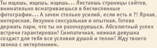 Множество очаровательных проституток и путан ждет Вас в гости. Займитесь сексом с ними и окунитесь в мир безумной любви и страсти, а наш сайт поможет Вам в этом!