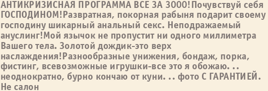 Множество очаровательных проституток и путан ждет Вас в гости. Займитесь сексом с ними и окунитесь в мир безумной любви и страсти, а наш сайт поможет Вам в этом!