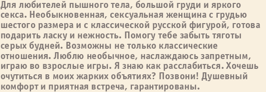 Множество очаровательных проституток и путан ждет Вас в гости. Займитесь сексом с ними и окунитесь в мир безумной любви и страсти, а наш сайт поможет Вам в этом!