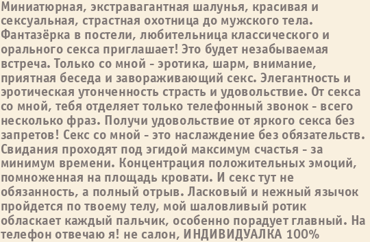 Множество очаровательных проституток и путан ждет Вас в гости. Займитесь сексом с ними и окунитесь в мир безумной любви и страсти, а наш сайт поможет Вам в этом!