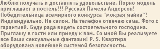 Множество очаровательных проституток и путан ждет Вас в гости. Займитесь сексом с ними и окунитесь в мир безумной любви и страсти, а наш сайт поможет Вам в этом!