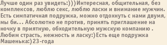 Множество очаровательных проституток и путан ждет Вас в гости. Займитесь сексом с ними и окунитесь в мир безумной любви и страсти, а наш сайт поможет Вам в этом!