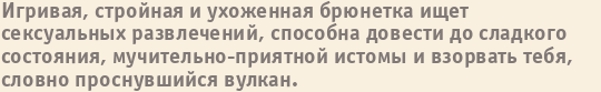 Множество очаровательных проституток и путан ждет Вас в гости. Займитесь сексом с ними и окунитесь в мир безумной любви и страсти, а наш сайт поможет Вам в этом!