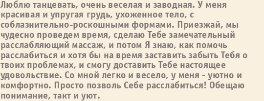Множество очаровательных проституток и путан ждет Вас в гости. Займитесь сексом с ними и окунитесь в мир безумной любви и страсти, а наш сайт поможет Вам в этом!