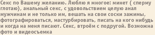 Шлюха Софья пишет о себе: