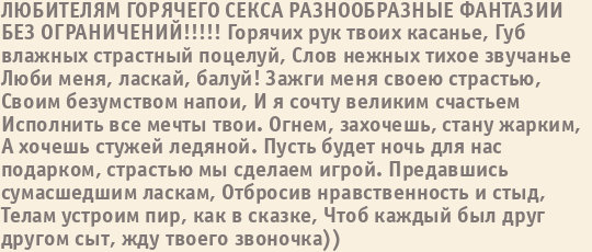 Множество очаровательных проституток и путан ждет Вас в гости. Займитесь сексом с ними и окунитесь в мир безумной любви и страсти, а наш сайт поможет Вам в этом!