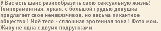 Множество очаровательных проституток и путан ждет Вас в гости. Займитесь сексом с ними и окунитесь в мир безумной любви и страсти, а наш сайт поможет Вам в этом!