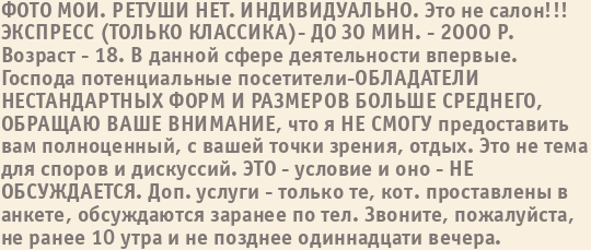 Множество очаровательных проституток и путан ждет Вас в гости. Займитесь сексом с ними и окунитесь в мир безумной любви и страсти, а наш сайт поможет Вам в этом!