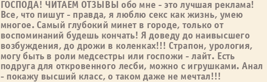 Множество очаровательных проституток и путан ждет Вас в гости. Займитесь сексом с ними и окунитесь в мир безумной любви и страсти, а наш сайт поможет Вам в этом!