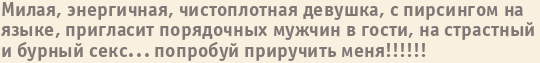 Множество очаровательных проституток и путан ждет Вас в гости. Займитесь сексом с ними и окунитесь в мир безумной любви и страсти, а наш сайт поможет Вам в этом!