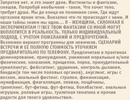 Множество очаровательных проституток и путан ждет Вас в гости. Займитесь сексом с ними и окунитесь в мир безумной любви и страсти, а наш сайт поможет Вам в этом!